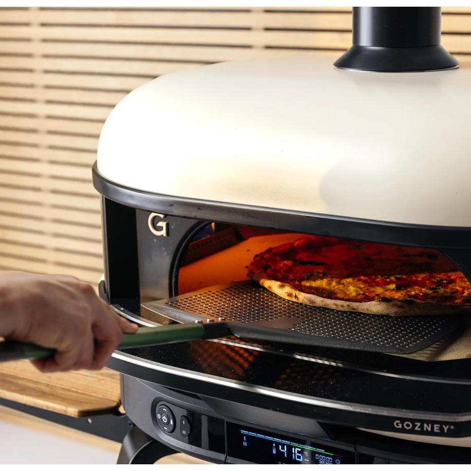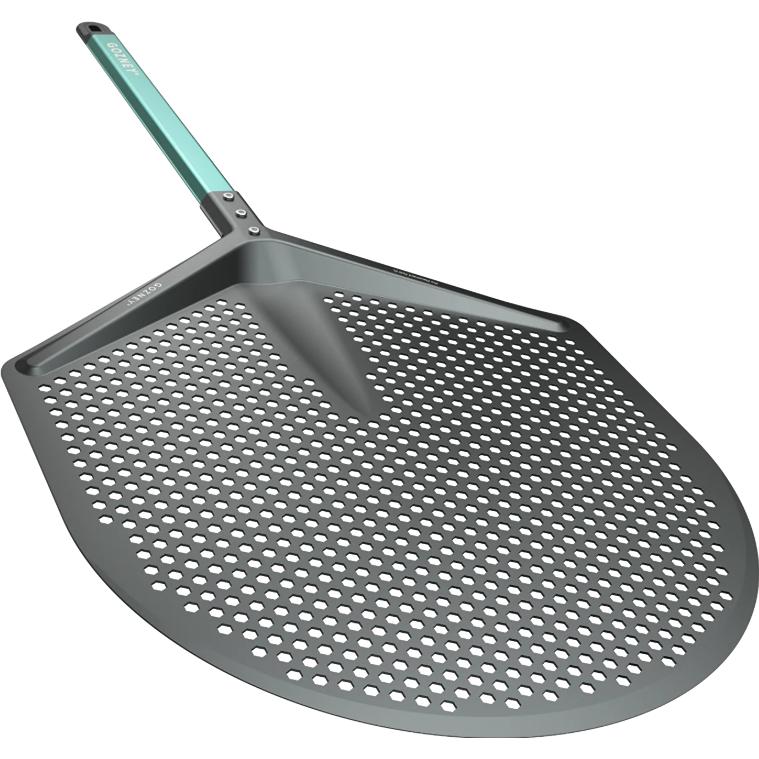 The Pro Placement Peel is designed to offer chefs a superior lightweight and optimized pizza experience, developed with and for the world’s best pizza makers. Designed with input from elite Gozney pizza chefs, the Pro is tuned specifically to the needs of pizza-makers who want to create their best pizza. A fully perforated blade allows maximum flour dispersion, completely minimizing the chance of excess flour accumulating on the bottom of the pizza and burning during your cook. The blade’s rounded shape helps you shape a perfect circle every time. The chiseled shape of the aluminum handle has angled sides for a confident grip and a curved underside so the peel slides freely through the hand when launching pizza. The fully aluminum construction provides lightweight comfort and overall responsiveness, creating a seamless extension of the chef’s arm – giving you the edge to reach your pizza-creating potential.