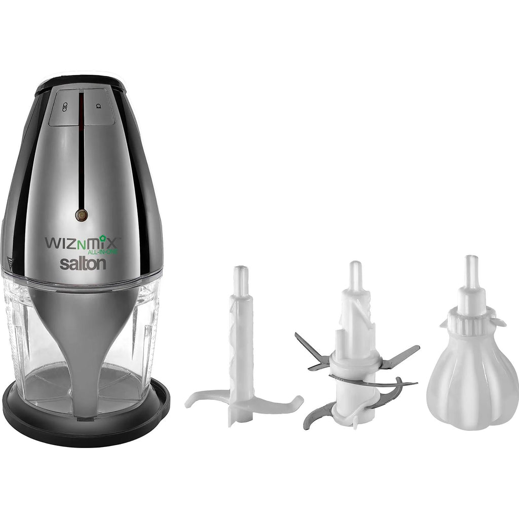 The Salton WizNMix All-in-One Food Processor, Chopper & Blender can replace up to 12 cooking appliances and food prep gadgets in your kitchen. A unique revolutionary, state-of-the-art technology in one...