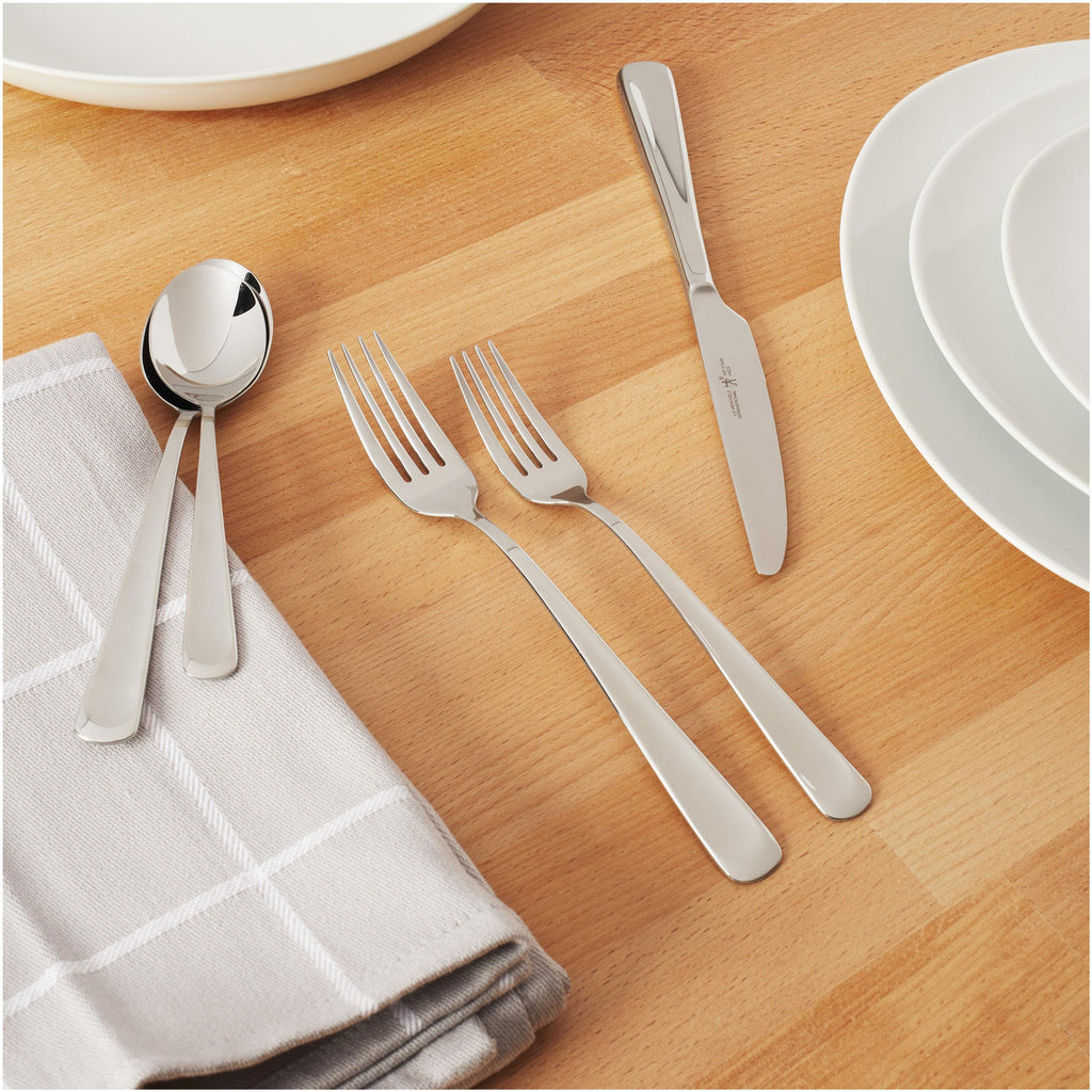 Each piece is fabricated from high-quality 18/10 stainless steel for optimal corrosion resistance. With a long-lasting silver-like luster, this set offers premium quality flatware at an exceptional price. The flatware features carefully polished surfaces and edges which both look and feel good. As one would expect from a longstanding cutlery company, the forged knives offer superior cutting precision. Each spoon, knife, and fork offer everyday durability. Easy to care for, the dishwasher safe flatware will beautify your tabletop.