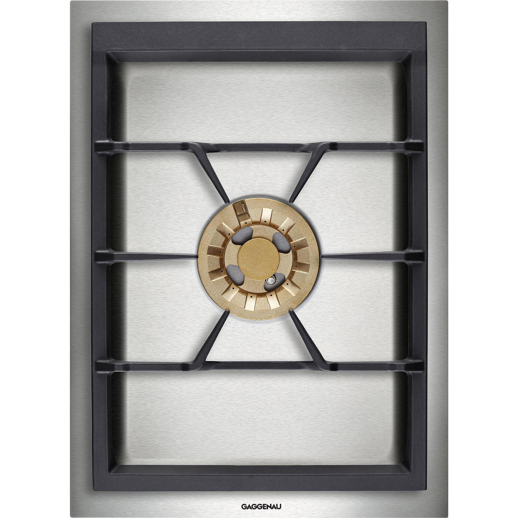 This Gaggenau cooktop features fully electronic gas valves for precise and reproducible power regulation. It also offers an automatic fast ignition and an electronic flame monitoring with automatic re-ignition.