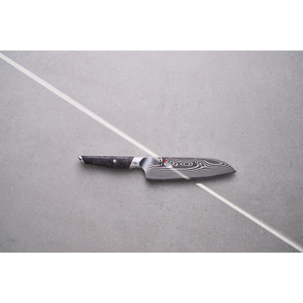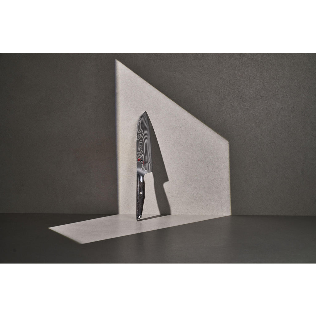 An exceptional Japanese knife that makes no compromises: MIYABI Iki. A blade so unique it can only be crafted by specially trained master artisans. Forged in over 130 steps from ultra-hard MC66 steel. A 49-layer blade featuring the Moonlight Damascus pattern—a design exclusive to the Iki series—and a distinct grind. Paired with a hand-shaped handle made of dark maple wood, perfectly matched to the blade. A top-tier Santoku, made for precise, ultra-fine slicing of meat, fish, and vegetables.
