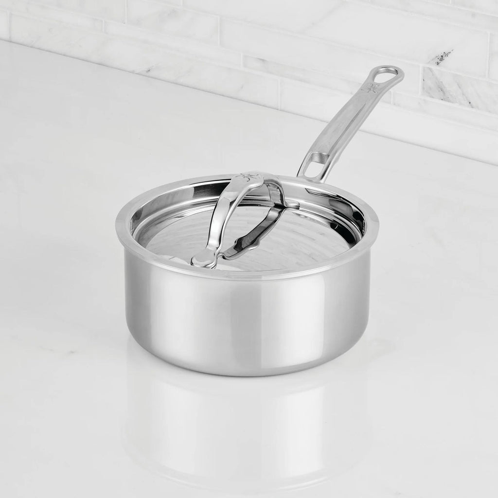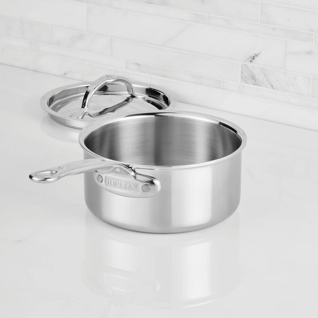 Purposeful innovation, functionality, and Italian craftsmanship converge with the ProBond® Luxe 1.5-Quart Polished Professional Clad Stainless Steel Saucepan with Lid. Ideal for boiled eggs, grains, glazes, oatmeal, or reheating soups, this ProBond® Luxe vessel brings precision performance to your home kitchen.