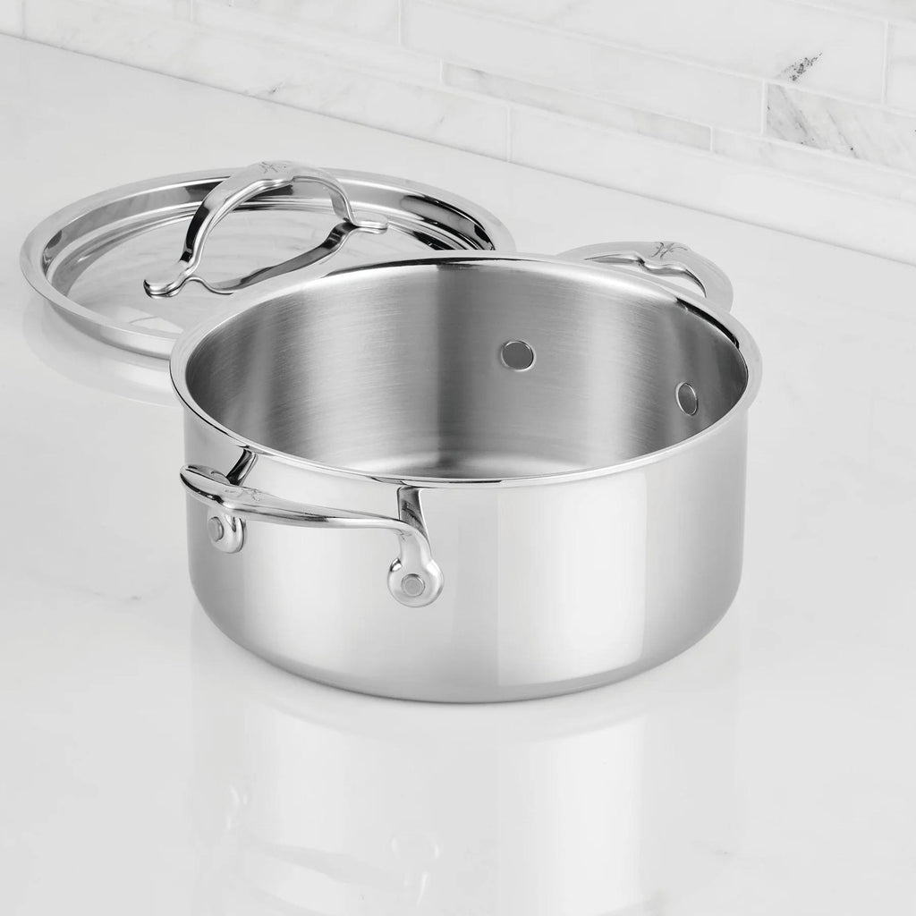 Purposeful innovation, functionality, and Italian craftsmanship converge with the ProBond® Luxe 3-Quart Polished Professional Clad Stainless Steel Soup Pot with Lid. Ideal for soups, grains, sauce reductions, and sides, this ProBond® Luxe vessel brings precision performance to your home kitchen.
